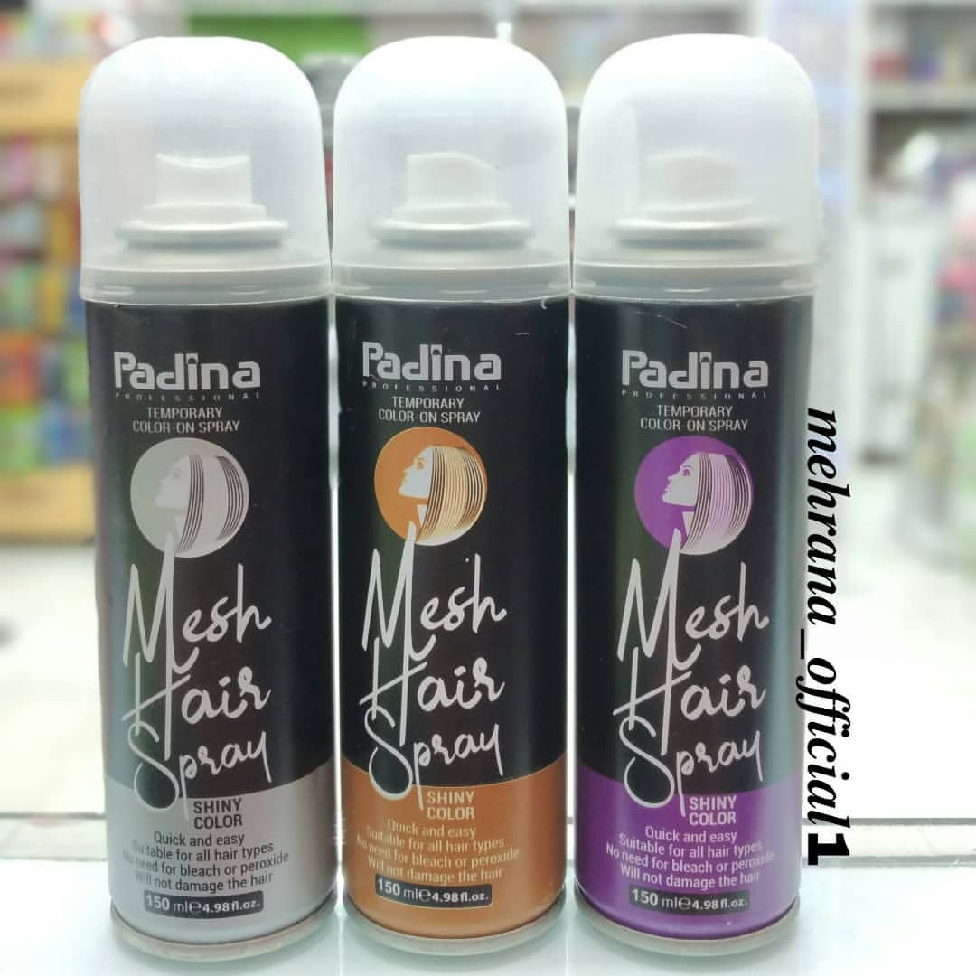 اسپرهای مش رنگی مو پادینا بهترین روش برای افرادی که خواهان تنوع رنگ مویشان هستند یا به عبارت دیگر علاقه زیادی به رنگ موهای فانتزی دارند. ویژگی محصول : خاصیت قوی حالت دهندگی و رنگ کردن موها بطور همزمان ماندگاری طولانی مدت رنگ روی مو.